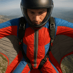 - Rozwinięcie wingsuita – w momencie otwarcia kombinezonu wingsuit rozpościera się między ramionami a nogami, zwiększając powierzchnię nośną.