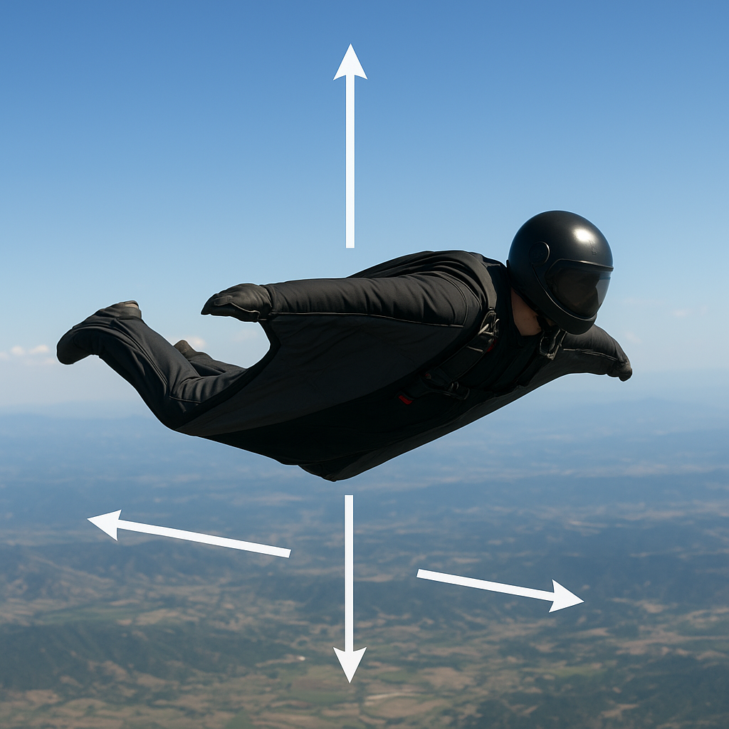 Podstawą precyzyjnego lotu jest umiejętność kontrolowania trajektorii za pomocą subtelnych ruchów ciała. Wingsuit pozwala na trzy główne typy manewrów:
